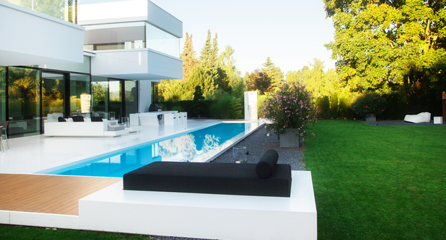 Si presenta così, avvolta nel candore della pietra acrilica bianca, quest'oasi di relax abitativo immerso nella tranquillità della natura bavarese, tra minimalismo e avanguardia. |